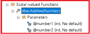 In the following example, we create a scalar function that takes two integer numbers and returns their sum. The function takes two input parameters of int data type and returns int data type value.